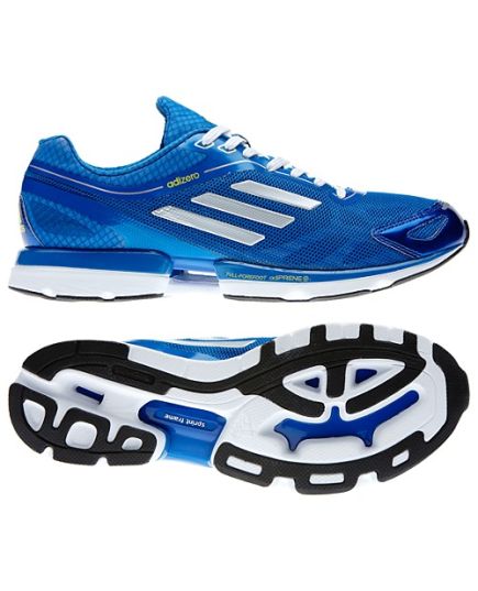 Get moving in the lightweight adizero™ Rush shoes by adidas. These featherweight, dynamic men's running shoes are just 7.5 ounces of high-mileage style, with adiPRENE®+ support in the forefoot, a light synthetic upper and a thin rubber outsole for a close