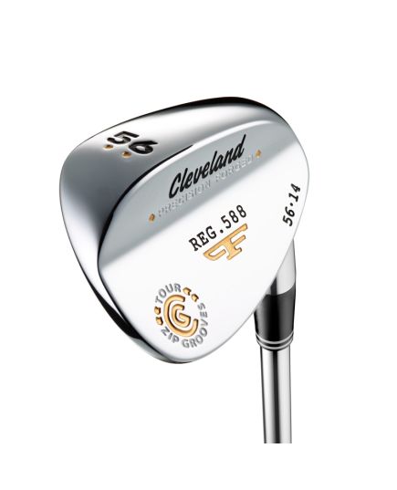 The 588 Forged wedge maintains the popular, tour-proven shape of its predecessor with a series of technological breakthroughs to provide even more performance. Every wedge is Precision Forged from 1025 carbon steel for incredibly soft, solid feel and the highest level of manufacturing consistency for supreme confidence and trust over every shot. Tour Zip Grooves™ and Laser Milled™ technology maximize spin in accordance with USGA regulations. Exclusive to the 588 Forged wedge is the Tour Concept Wedge steel shaft, co-developed and engineered by Cleveland Golf and industry leader True Temper. With a unique stiffness profile that features a less active tip, this shaft promotes a more penetrating ball flight, increased spin and optimal distance control along with superior feel. Choose from two different finishes – Satin and Chrome – as well as low, standard and high bounce options.